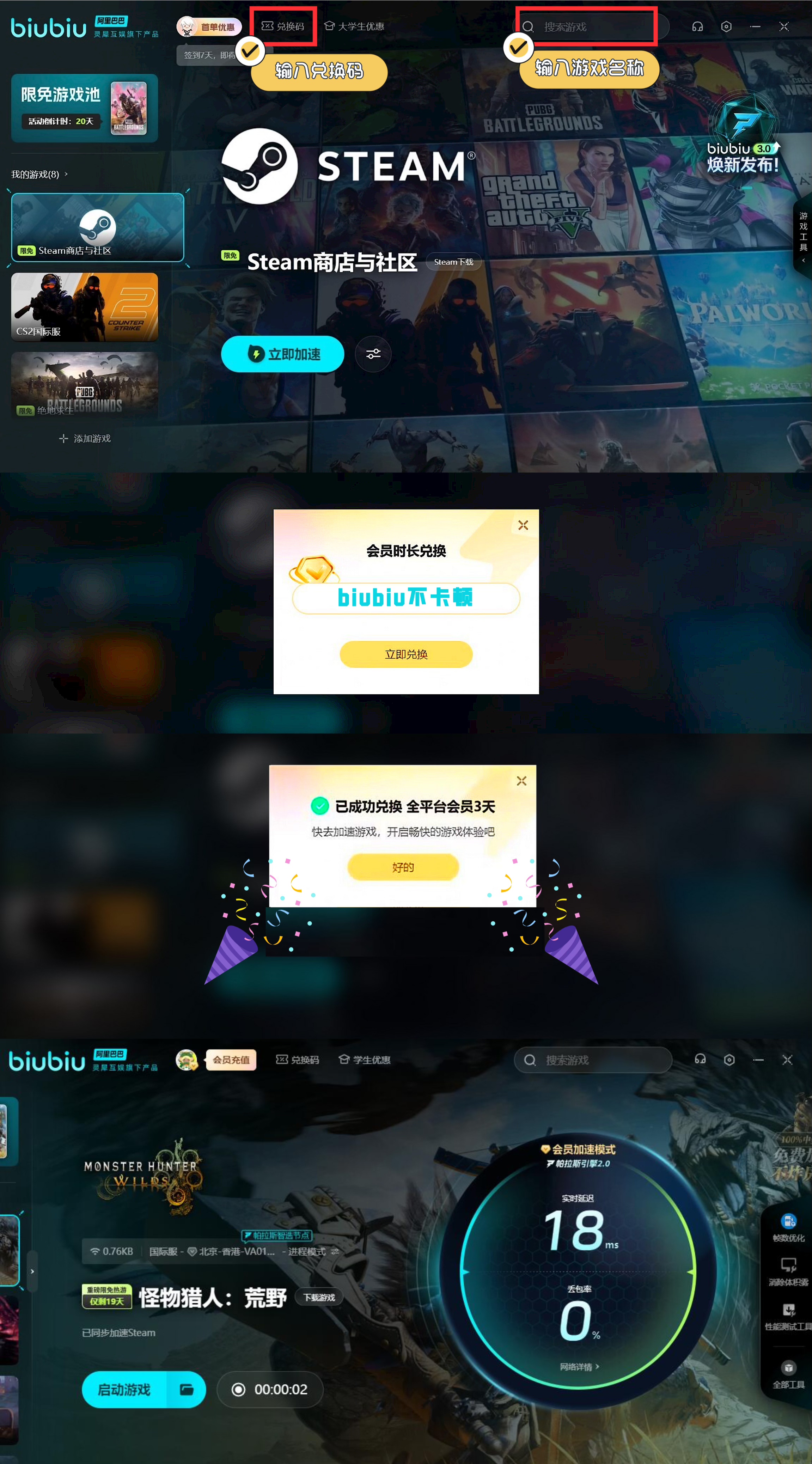 在參與大規(guī)模的線上團(tuán)戰(zhàn)時(shí),一個(gè)穩(wěn)定的網(wǎng)絡(luò)可以派上大用場,讓你能心無旁騖地去施展自己的技巧,對(duì)目標(biāo)發(fā)起致命攻擊,biubiu加速器內(nèi)專業(yè)的服務(wù),就能為你營造一個(gè)可靠的游玩環(huán)境,為了便于大家試用,現(xiàn)在注冊為新用戶,還能領(lǐng)到3小時(shí)的會(huì)員,后續(xù)還可以通過輸入【biubiu不卡頓】這個(gè)碼,還能再領(lǐng)72小時(shí)會(huì)員。