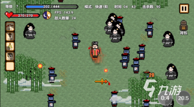 這款游戲的畫風非常特別,是古早的像素風格,有掌上游戲機那味兒了。在游戲中,玩家需要通過和僵尸鬼怪的戰(zhàn)斗解鎖各項技能,技能隨著成長可以隨機選擇,這也意味著每一局都是一個充滿未知的開局,你永遠不知道自己下一個會擁有的技能是什么樣的。游戲里的節(jié)奏很快,道術也可以隨玩家心情隨意搭配,在僵尸和其他鬼怪的圍攻之下,你有沒有實力運用這些隨機的技能過關呢?快進入游戲一探究竟吧!