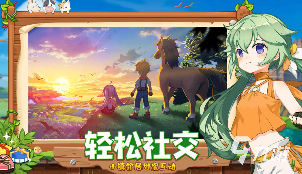 一款經營互動的農場經營游戲,游戲的小鎮(zhèn)區(qū)域是相對較大的,除了一些日常的固定互動操作之外,也有一些隨機的事件玩法。游戲中動物數(shù)量也很多,可以提升好感來騎乘。