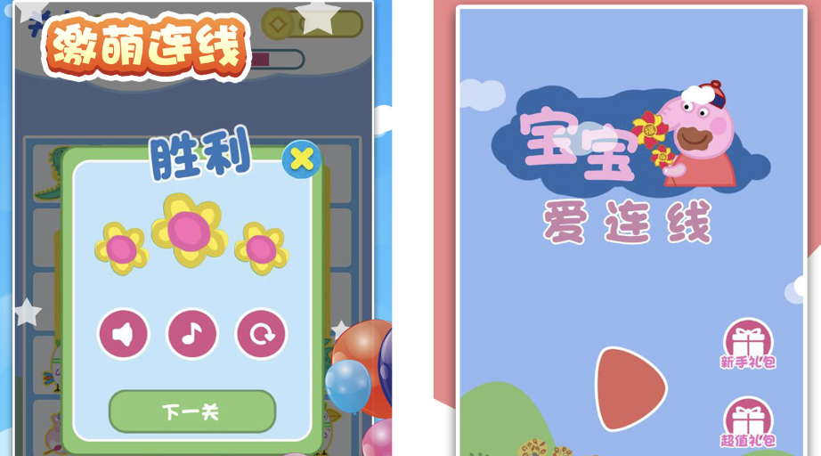 采用小孩子都喜歡的小豬佩奇主題,畫面設計卡通溫馨,玩法規(guī)則十分簡單,只需要在規(guī)定時間內將相同兩種動物用線連接,且連線填滿所有空格即為通關,連線解密充分調動大腦。