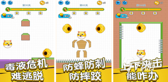 基于畫線玩法為核心,在豐富多樣化的關(guān)卡中,每個(gè)關(guān)卡的任務(wù)要求都完全不同,不過其中還有提示的功能,可以幫助玩家順利完成闖關(guān)。會為玩家呈現(xiàn)出不同的地形地貌以及不同的機(jī)關(guān),玩家只要通過合理規(guī)劃的方式,就能順利完成闖關(guān),主要講述的就是有大量瘋狂的蜜蜂想要傷害狗狗,而玩家要想方設(shè)法阻止這一切。