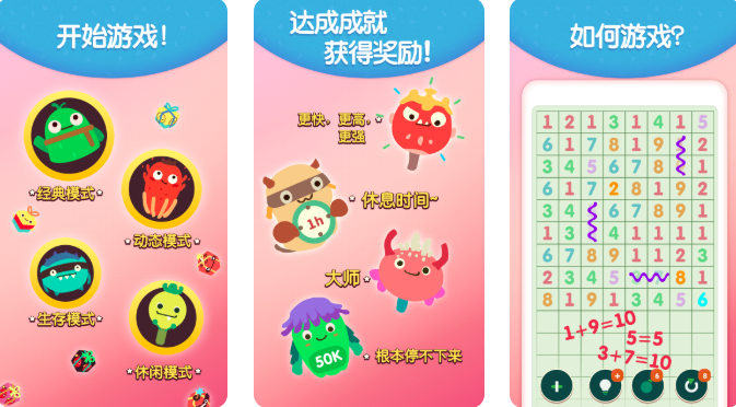 數(shù)學(xué)類益智游戲,要想擁有好體驗(yàn)必定離不開創(chuàng)新?!赌X洞小數(shù)字》,成功將數(shù)學(xué)益智玩法,與消滅星星游戲規(guī)則相結(jié)合,生存模式、經(jīng)典模式等4種主題模式,讓你在9個數(shù)字間,玩出更多新花樣。動態(tài)挑戰(zhàn),更是再生難度;合并玩法,開啟數(shù)字謎題新體驗(yàn),一次體驗(yàn)350+數(shù)學(xué)關(guān)卡。