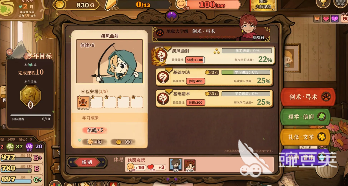 例如,玩家可以讓女兒學(xué)習(xí)騎士的課業(yè),也能夠讓女兒前往到占卜臺之中,學(xué)習(xí)神秘學(xué),當(dāng)然,日常的娛樂項目例如耕種、烹飪、釣魚、飛鏢等等,都可以讓玩家提高女兒的屬性數(shù)值。