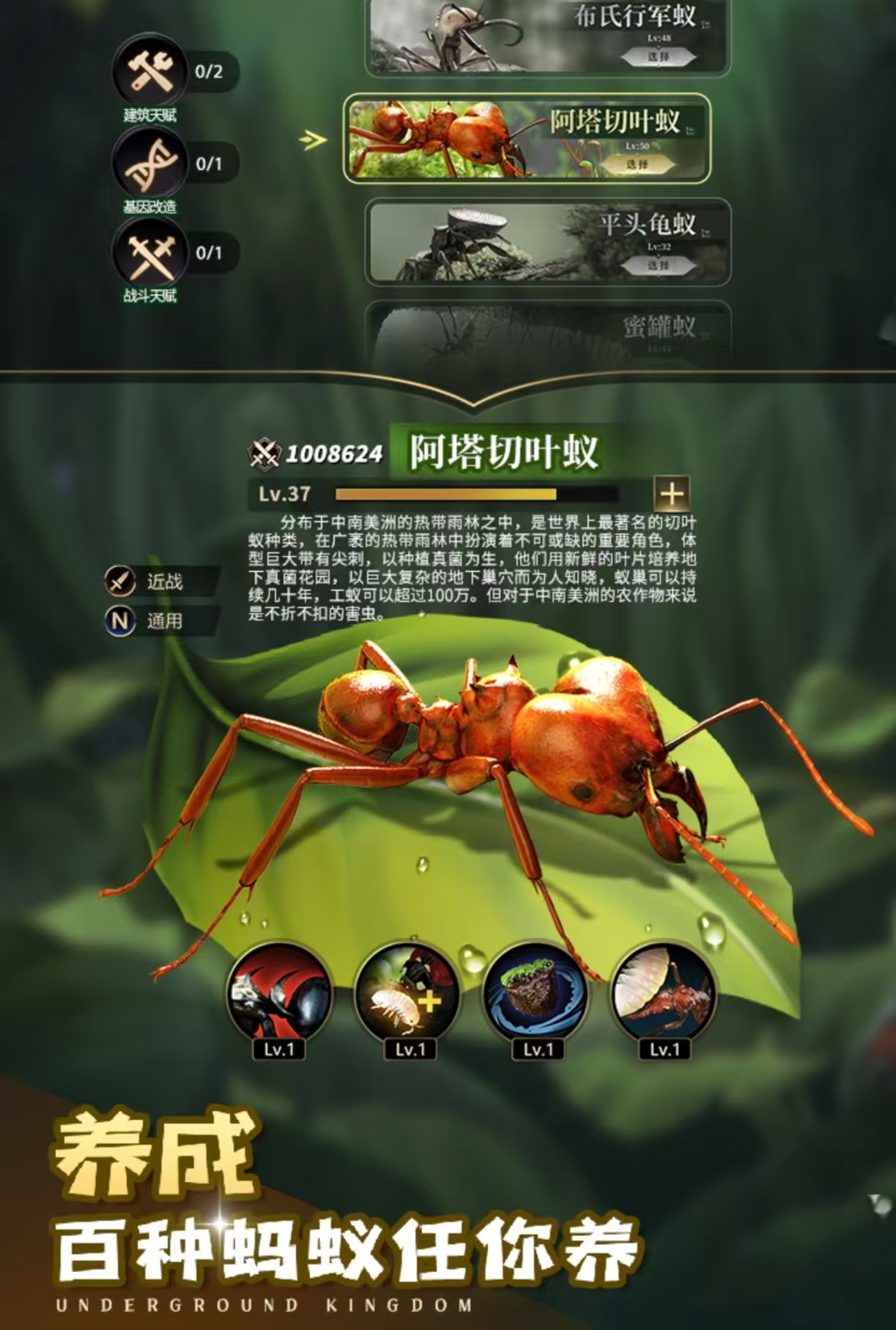 《小小蟻國》還原了螞蟻生存的整個(gè)過程,將作為小小螞蟻的視角體驗(yàn)游戲,可以觀察到螞蟻是怎樣建造巢穴的,還可以命令其他的螞蟻進(jìn)行工作?;蛘邉?chuàng)建一個(gè)強(qiáng)大的聯(lián)盟,要求游戲內(nèi)其他的玩家一起加入,遇到強(qiáng)大敵人時(shí)可以共同攻擊。將不同的病種進(jìn)行合理分配,比如可以搬運(yùn)一些食物或者水源,有一些螞蟻就可以進(jìn)行孵化,逐漸的將螞蟻家族變得越來越壯大。