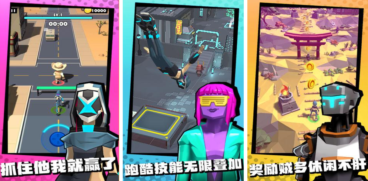 這款跑酷+抓捕主題的游戲具備著精彩刺激的互動(dòng)過(guò)程,一系列酷炫的跑酷技能和動(dòng)作效果代入感更強(qiáng),休閑不肝不氪的追逐跑酷理念深入人心,還加入了無(wú)限疊加的buff系統(tǒng)能輕松完成任務(wù),賊多的獎(jiǎng)勵(lì)道具增添了玩家的追逐快感,立體精致的地圖塑造愛(ài)來(lái)的跑酷感覺(jué)也是十分逼真的。