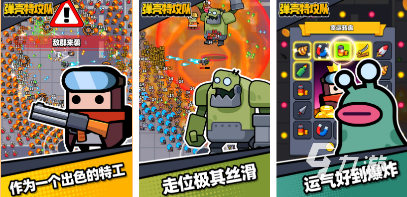 《彈殼特攻隊(duì)》是個(gè)打僵尸的小游戲,在游戲里玩家的敵人就是一大波的僵尸,有些僵尸很普通,只會(huì)緩慢的追逐著玩家,還有一些僵尸會(huì)開槍,可以遠(yuǎn)程攻擊玩家,玩家也可以裝備上一些遠(yuǎn)程的武器攻擊,還可以在游戲里獲得很多強(qiáng)力技能來攻擊僵尸們,游戲里的木箱子里還有秒殺一切的手雷道具。