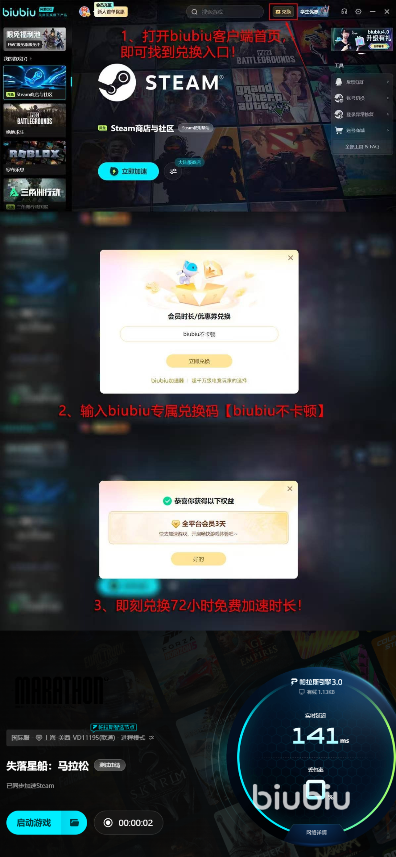 在使用提速應用的時候,如果是初次使用的用戶,比較擔心的問題就是引用提速應用就需要花錢,若是效果達不到自己的預期,那么錢還不能退款,白花了,而小編給大家?guī)淼倪@款就能很好的避免這種情況,新用戶在初次登錄注冊該平臺的時候,可以得到自動發(fā)放的24小時提速福利,不需要花錢,可以給任意游戲?qū)ο筮M行提速,同時平臺還給每個用戶都提供了三天體驗時長,需要大家自己通過【biubiu不卡頓】進行領取使用才行,這是考慮到了有的用戶在初次注冊時沒有及時體驗新人福利而進行的另一福利舉措。