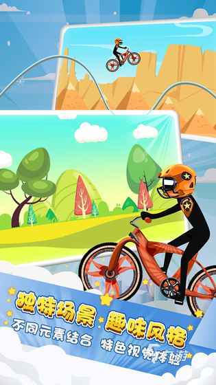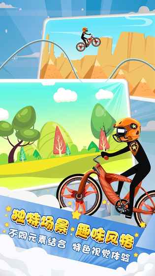 《火柴人單車》將特技自行車和火柴人這個(gè)角色進(jìn)行了結(jié)合,使用它們來(lái)進(jìn)行物理的極限挑戰(zhàn),使用自行車來(lái)在各種賽道之中進(jìn)行闖關(guān),并做出眾多的自行車特技,其中的障礙危險(xiǎn)且海量,等玩家使用更強(qiáng)勁的操作技術(shù)來(lái)躲避。游戲之中的每個(gè)關(guān)卡包含著不同主題,可以在輕松有趣的畫質(zhì)當(dāng)中解決更多的關(guān)卡,挑戰(zhàn)更高紀(jì)錄。