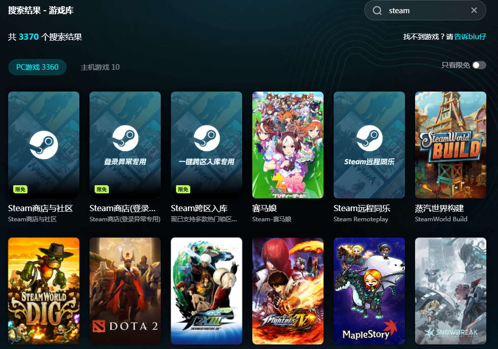 紅色沙漠這款游戲支持多平臺游玩,上線以后大家也能通過steam來購買暢玩。而steam也在biubiu的加速范圍當中,只要站內輸入steam就能查找到眾多有關steam的加速資源,不僅能夠解決商店社區(qū)白屏的問題,協(xié)助大家順利連接遠程同樂,更是有額外提升的下載速度來下載游戲,玩紅色沙漠快人一步。