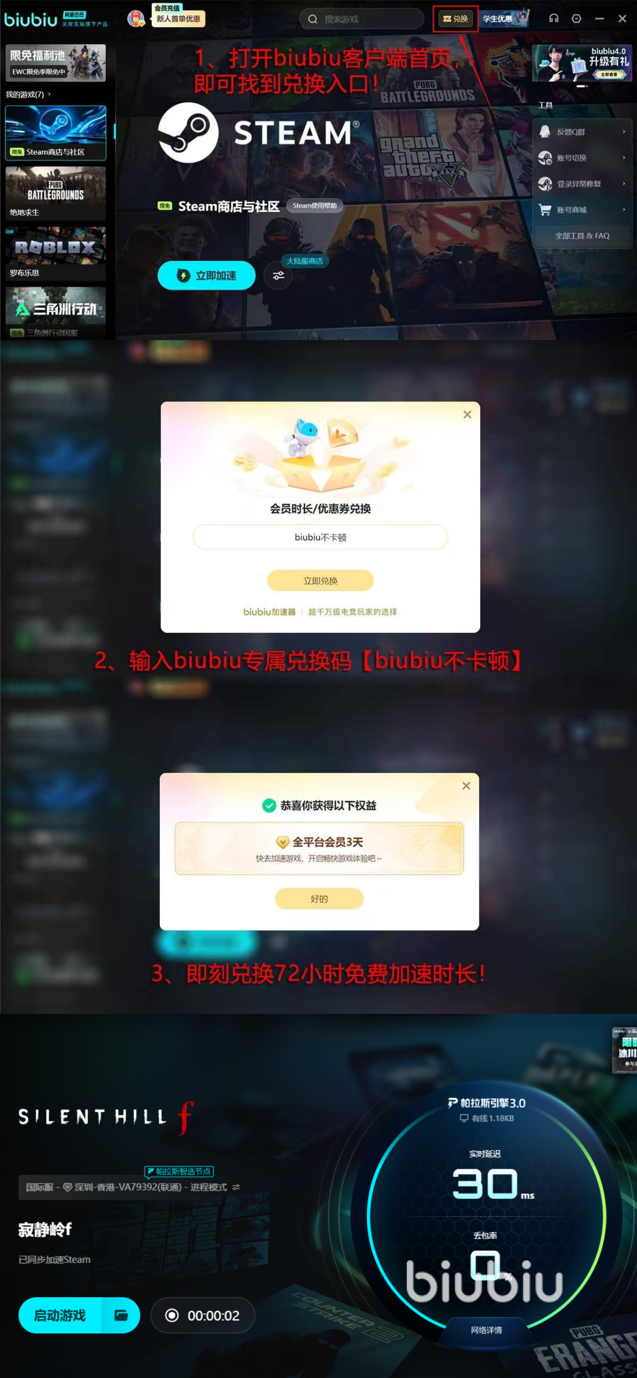 至于用哪款?可以試試biubiu,有不少用戶都在使用該平臺(tái)發(fā)展時(shí)間已經(jīng)很久了,而且在不斷的根據(jù)當(dāng)下的環(huán)境去制作出更加符合主流游戲的提速軟件,最近新的帕拉斯引擎3.0系統(tǒng)已經(jīng)更新完成,得到了職業(yè)選手的認(rèn)證,能夠輕松應(yīng)對(duì)各種情況,像Aixleft這樣的大神都支持大家使用,是自己親身試驗(yàn)過(guò)的,因此性能方面大家無(wú)需擔(dān)心。此外,平臺(tái)還給新用戶提供了很多的好處,讓大家可以免費(fèi)感受實(shí)際的效果,比如新人登錄會(huì)得到平臺(tái)直接贈(zèng)送的一整天的提速服務(wù)時(shí)長(zhǎng),同時(shí)平臺(tái)還給全體用戶都提供了額外3天的兌換福利,只需要在指定區(qū)域用【biubiu不卡頓】進(jìn)行兌換就行了。