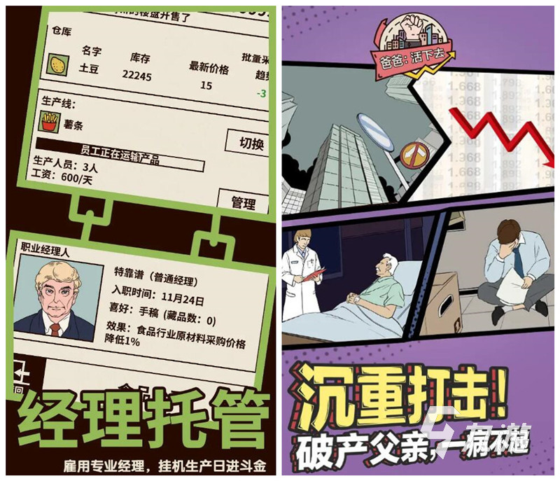 這是一款文字模擬游戲,游戲講述的是世界爆發(fā)了金融危機(jī),你的企業(yè)受到了重創(chuàng),父親為了保住最后一件食品工廠耗費(fèi)了精力,從而病倒。你看著勞累的父親發(fā)誓要重振家族企業(yè),你需要合理的分配你最后的資金發(fā)展公司,還要維持父親的生命。游戲中每個(gè)選擇都可能決定你公司的長(zhǎng)久發(fā)展哦。
